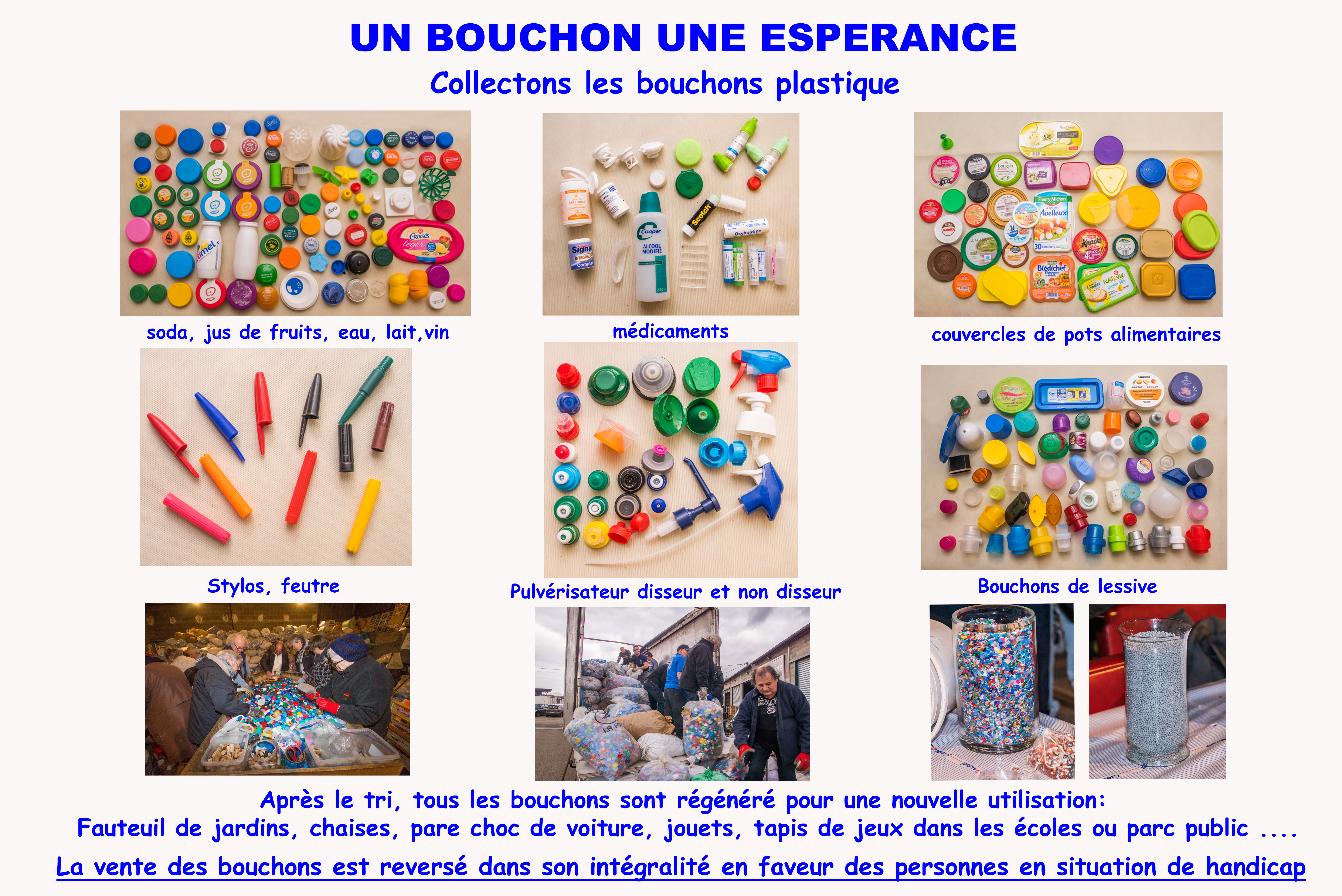 UN BOUCHON UNE ESPERANCE . . . . . . . . . . Tél: 06 70 44 67 21 . . . . . Retrouvez nous sur Facebook et Instagram "LaBouchonnette"